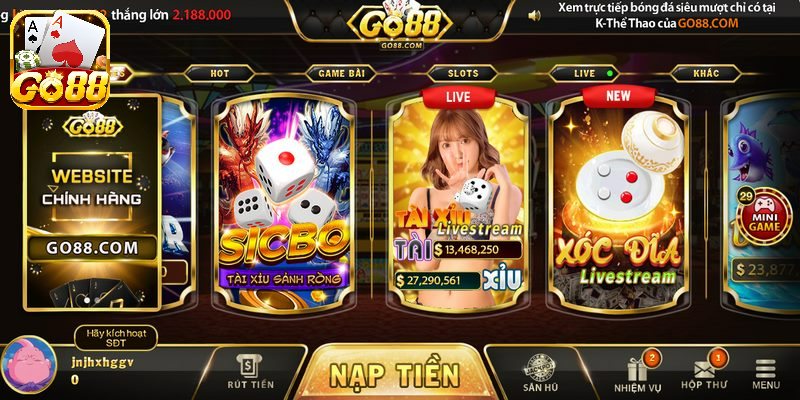 Sicbo là một trò chơi dựa trên sự may mắn nhưng cũng đòi hỏi người chơi phải có kỹ năng phân tích và đặt cược đúng lúc. Trên Go88, anh em thoải mái tham gia trò chơi cũng như trải nghiệm sự hiệu quả, vui vẻ.